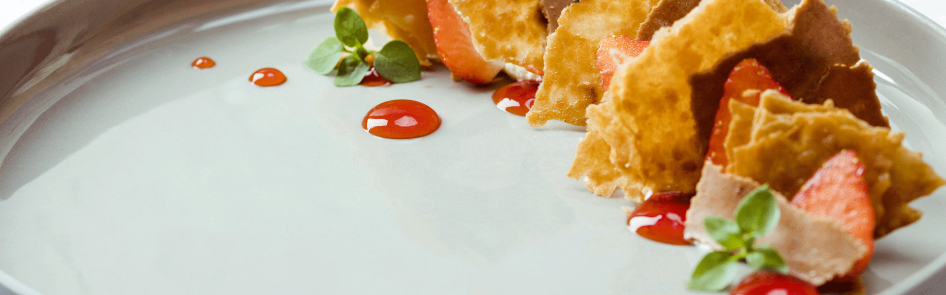 - Puree the strawberries and season with sugar, STROH, and lemon juice.